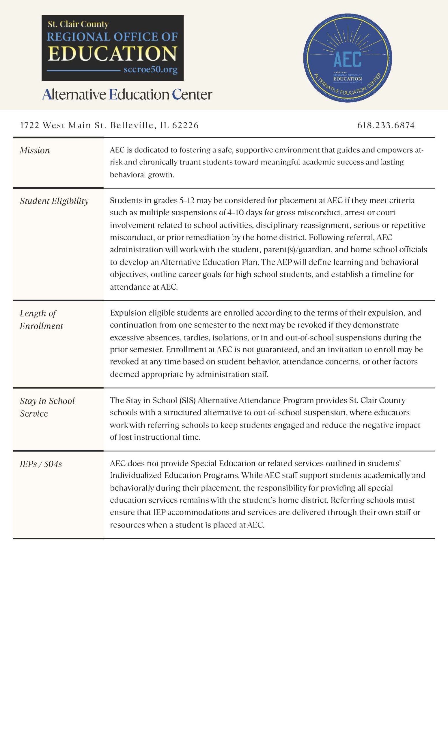 Alternative Education Center (AEC) Overview