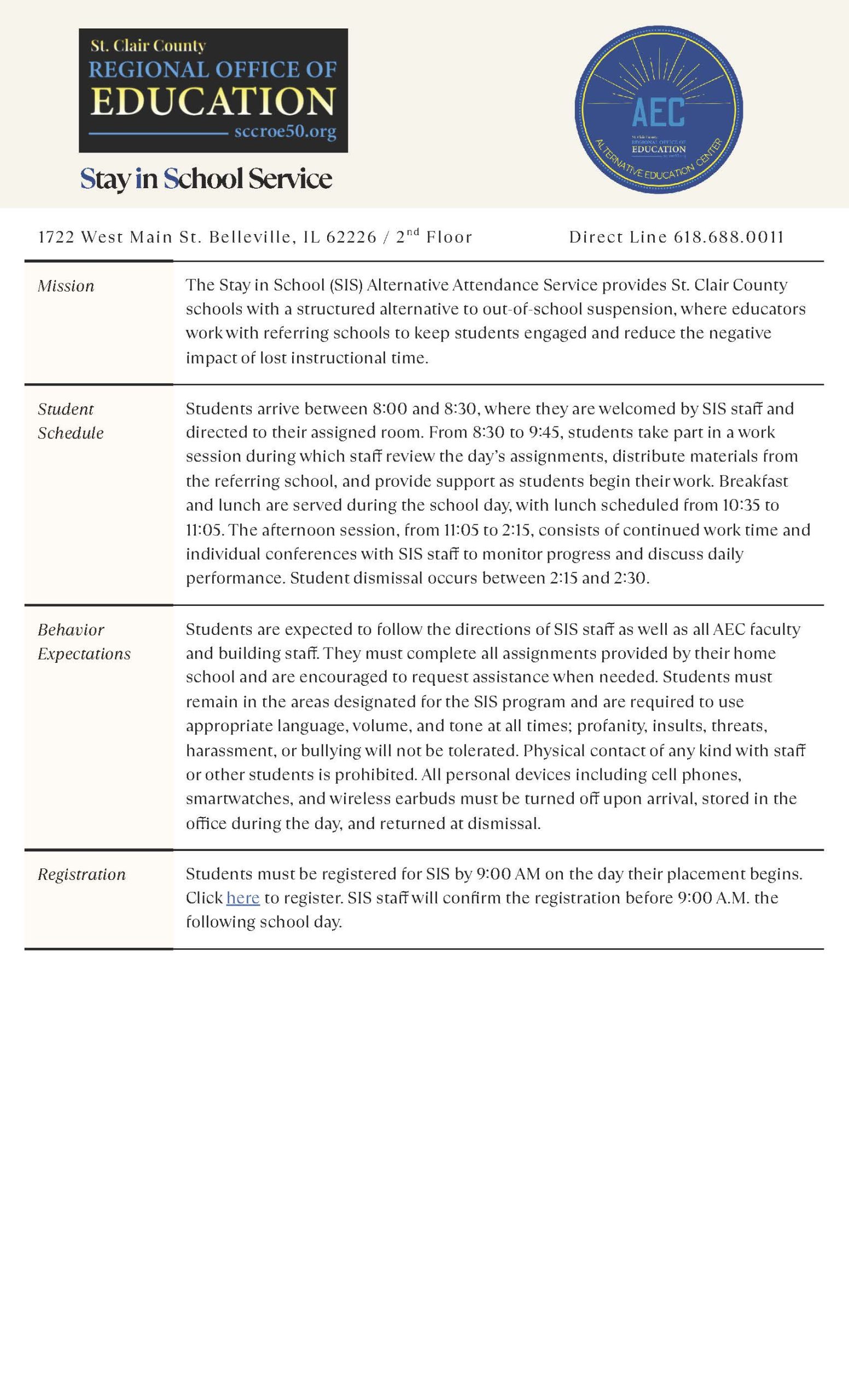 Stay In School (SIS) Overview